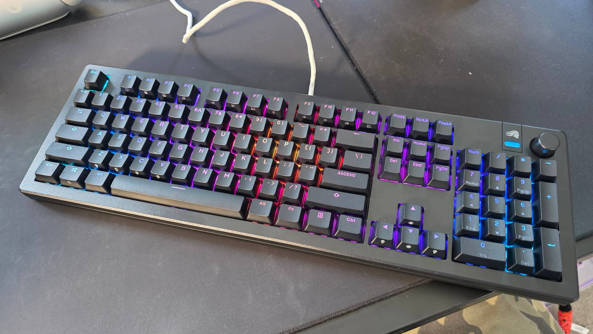 Compressed layout design incorporates secondary controls within traditional form factors, employing noise-reduction techniques. Current documentation gaps may challenge initial setup despite impressive build quality and switch options.