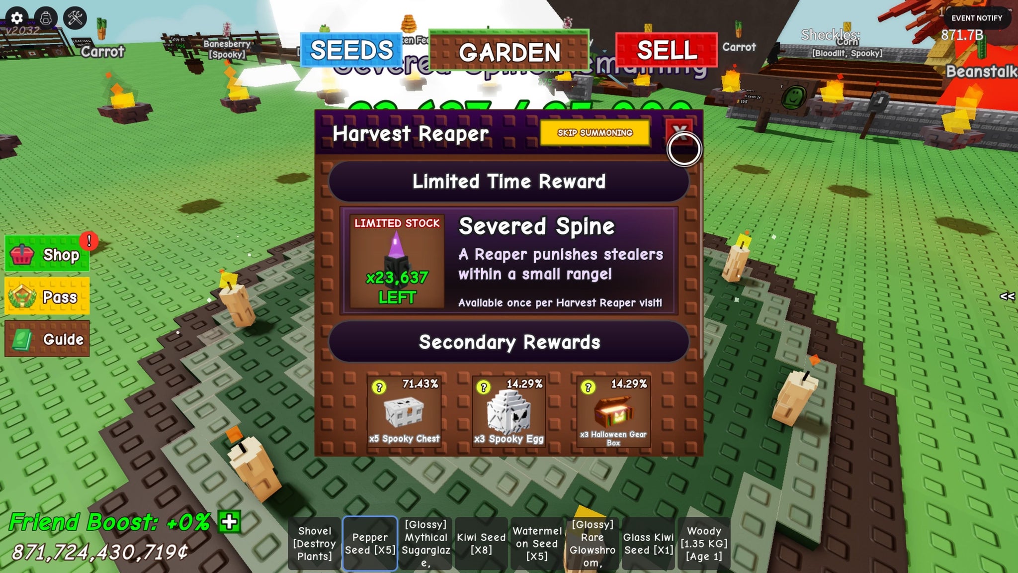 Participating cultivators encounter rotating crop demands that occasionally require mutated plant variants. Delivering requested flora yields Candy Corn currency alongside potential loot drops. A scarce Severed Spine Seed remains the marquee prize, though its availability caps at 25,000 distributions per Reaper cycle.